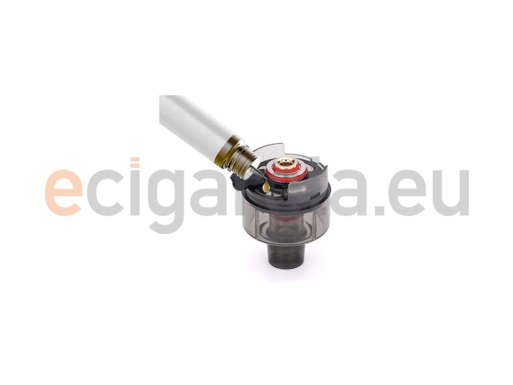 Ve vrchní části se nachází cartridge s velkým objemem a ergonomicky tvarovaným náustkem. Do cartridge je možné doplnit až 4 ml e-liquidu, díky čemuž můžete e-cigaretu bez problému používat také velice intenzivně bez nutnosti častého doplňování. V případě potřeby ji potom jen vyjmete z těla baterie, otočíte vzhůru nohama a během pár vteřin doplníte e-liquid zpět.