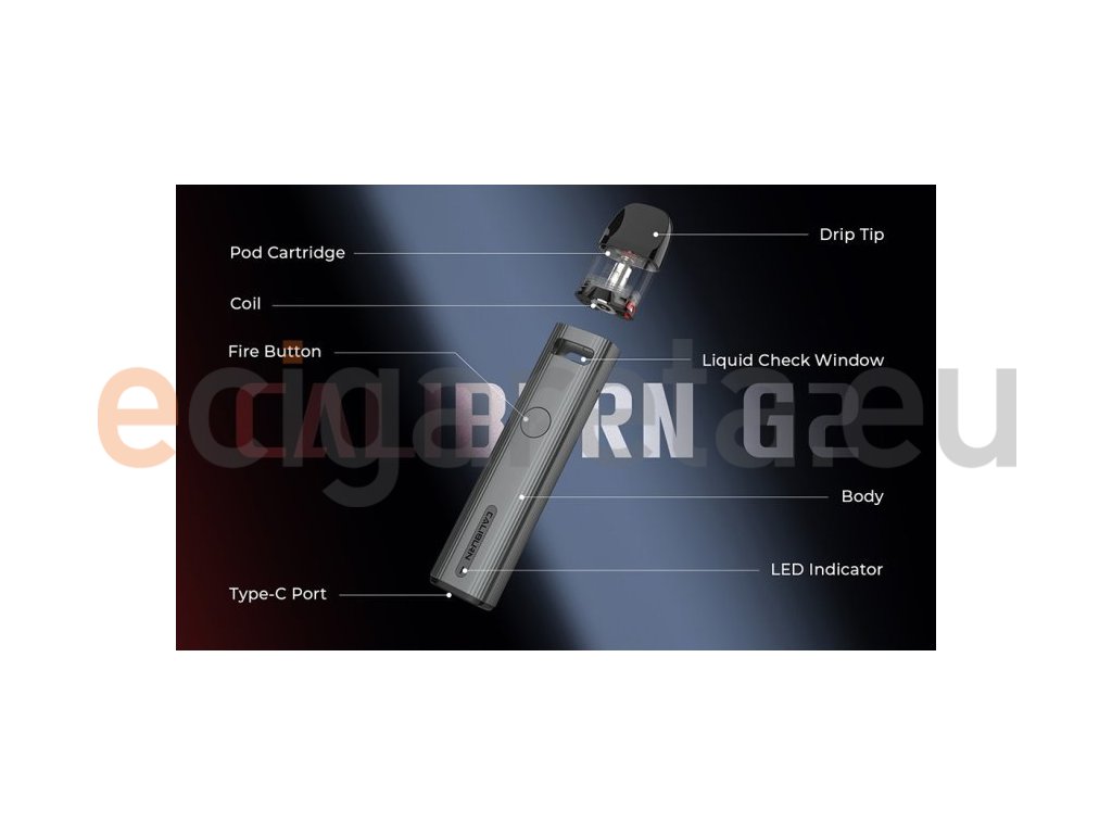 Uwell představuje elektronickou cigaretu Caliburn G2, která je odborníky na vaping považována za nejpropracovanější model této veleúspěšné řady. Tělo baterie je vybaveno monočlánkem o kapacitě 750mAh, LED indikátorem stavu nabití, automatickým spínačem a moderním USB-C portem pro rychlé nabití. Cartridge G2 o objemu 2ml disponuje inovativní regulací přívodu vzduchu pomocí regulačního kolečka - nejlepší nastavení chuti liquidu. Žhavicí hlavy jsou kompatibilní s řadou Caliburn G (0,8ohm a 1ohm) a novinkou o odporu 1,2ohm