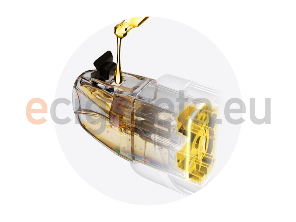 Kromě obvyklého bočního posuvníku přívodu vzduchu máte ještě druhou možnost. Cartridge totiž můžete na tělo e-cigarety nasadit jedním ze dvou směrů, přičemž každá strana nabídne rozdílnou šířku otvoru pro sání. Pomocí této dvojité regulace si velmi detailně vyladíte potah pro utaženější MTL nebo vzdušnější RDL vaping.