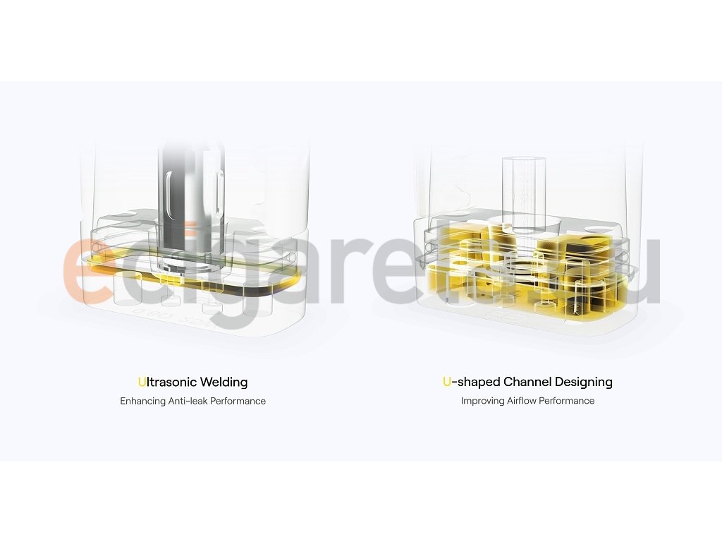 Dvojitá airflowInovativní systém dvojité regulace přívodu vzduchu kombinuje boční páčku na těle s otočnou cartridge pro přesné nastavení tahu. Každá strana cartridge nabízí jiný průměr otvoru, umožňující perfektní ladění mezi vzdušným RDL a utaženým MTL stylem vapování. |