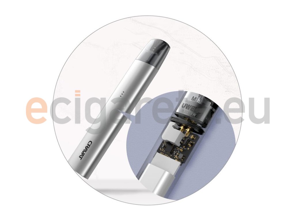 Lehká jako pírko, o e-cigaretě Uwell Cravat platí toto přirovnání dvojnásob. Celé tělo je vyrobeno z lehoučké hliníkové slitiny, kterou doprovází cartridge z odolného PCTG plastu. Celková hmotnost e-cigarety potom činí neuvěřitelných 20,5 g. Při přenášení tak nebude dělat jakoukoliv neplechu a příjemně a komfortně se také drží v ruce během samotného potahování. Jedná se o jednu z nejlehčích e-cigaret na současném trhu.