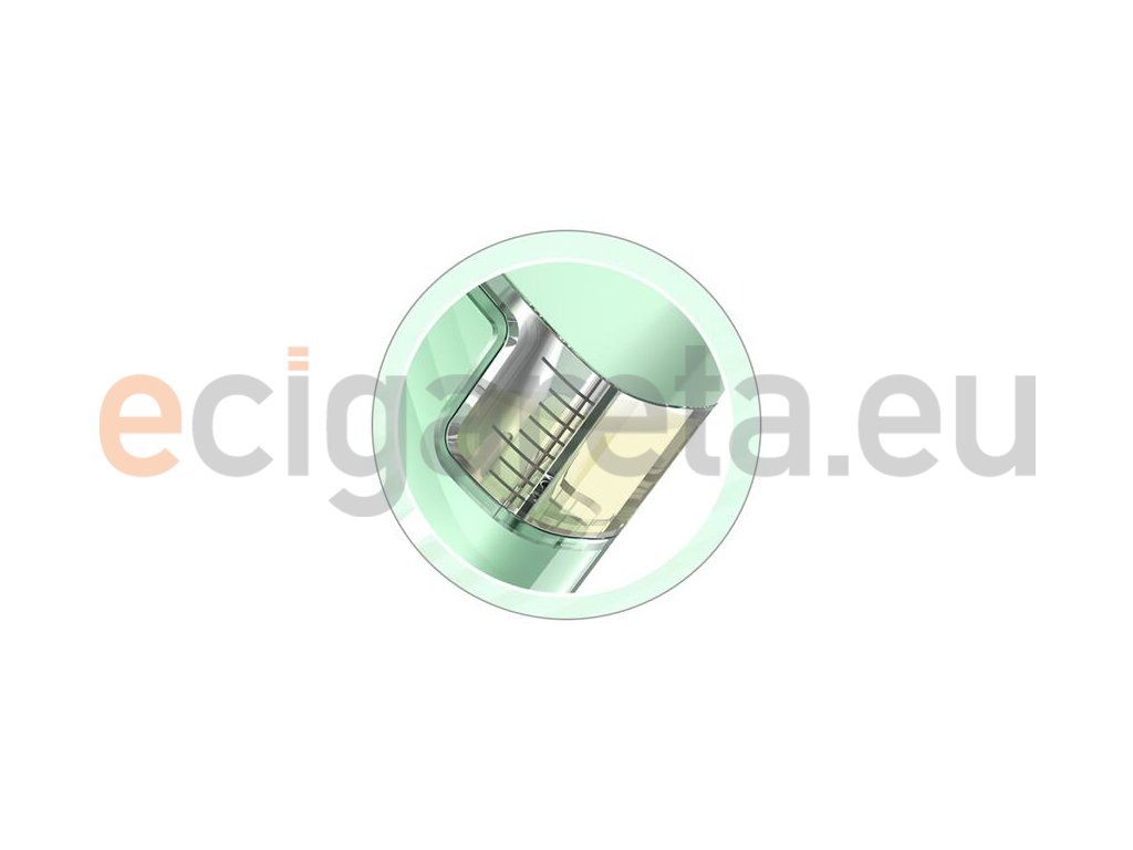 Cartridge ve vrchní části nabídne základní objem 2 ml a praktické vrchní plnění. Nebudete ji muset ani odpojovat od těla baterie. Jednoduše sejmete náustek do strany a můžete začít plnit do příslušného otvoru. Celý proces zabere jen několik málo vteřin, poté se můžete opět uchýlit k vapování.