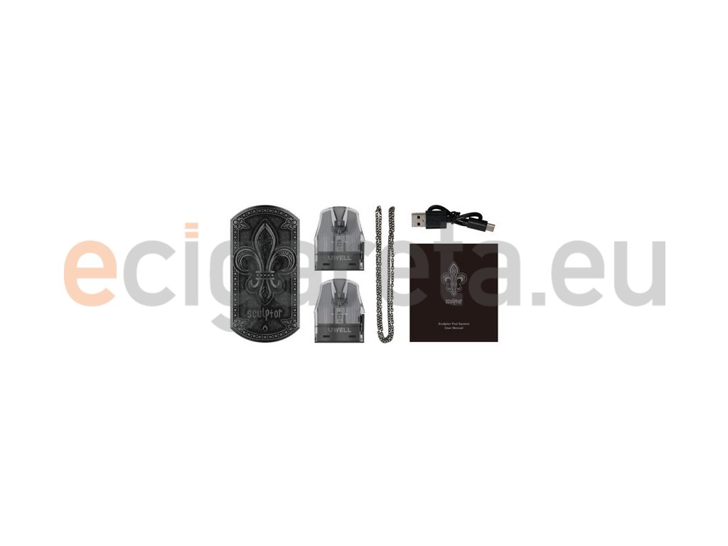 Uwell Sculptor Pod Kit je elegantní a nádherná e-cigareta, která se pyšní kovovou konstrukcí z kombinace zinkové slitiny, mědi a dalších materiálů. Její panel potom zdobí nádherná rytina v podobě Fleur de lis, heraldický znak lilie. Model Sculptor je geniální ukázkou pečlivého vývoje a vytříbeného vkusu designérů ze společnosti Uwell.
