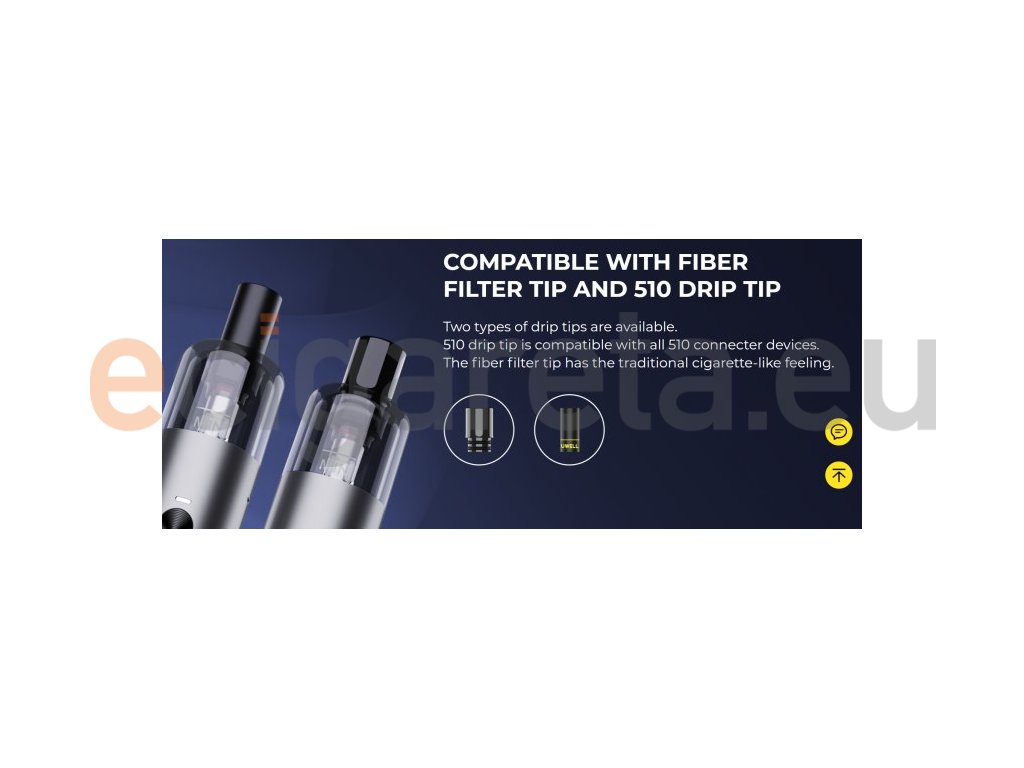 Elektronická cigareta Whirl S2 je speciálně navržena pro uživatele, kteří preferují jednoduchý styl a hlavně dobrou chuť liquidu. Válcovitý tvar baterie o kapacitě 900mAh disponuje automatickým výkonem až 17W, USB-C portem, indikátorem stavu nabití a důmyslnou regulací přívodu vzduchu. Cartridge se spodním plněním o objemu 3,5ml je kompatibilní se žhavícími hlavami Whirl S o odporu 0,8ohm a nově i 1,2ohm. Pro ideální potah si můžete zvolit mezi klasickým 510 náustkem nebo přidáním speciálního filtru do náustku (vhodné pro klasické kuřáky, kteří přecházejí k elektronickým cigaretám a filtr jim tak navozuje pocit klasické cigarety).