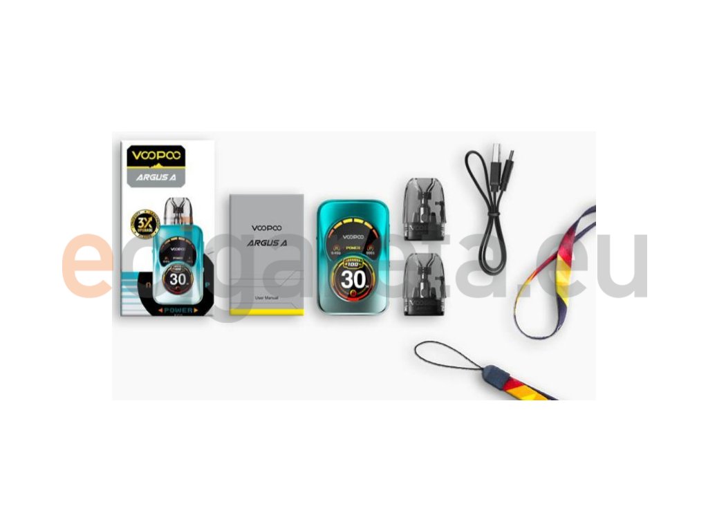 Není určeno pro náplně obsahující nikotin! ,,Vlajková loď ´´ třídy ARGUS s přízviskem A je do detailu vyladěná elektronická cigareta od společnosti VOOPOO. Přední panel baterie podtrhuje výjimečnost tohoto zařízení - barevný dvouzónový displej. Během vapování se na obrazovce objevují zábavné animace společně s informacemi o nastavení. Vestavěný monočlánek disponuje kapacitou 1100mAh s rychlonabíjením typu USB-C 5V/2A. Moderní čip GENE přináší nastavitelný výkon až 30W a režimy SUPER a ECO. Samozřejmě nesmíme zapomenout na boční Airflow pro doladění kouřivosti. Tato sada obsahuje cartridge Argus s vrchním plněním o objemu 3ml.