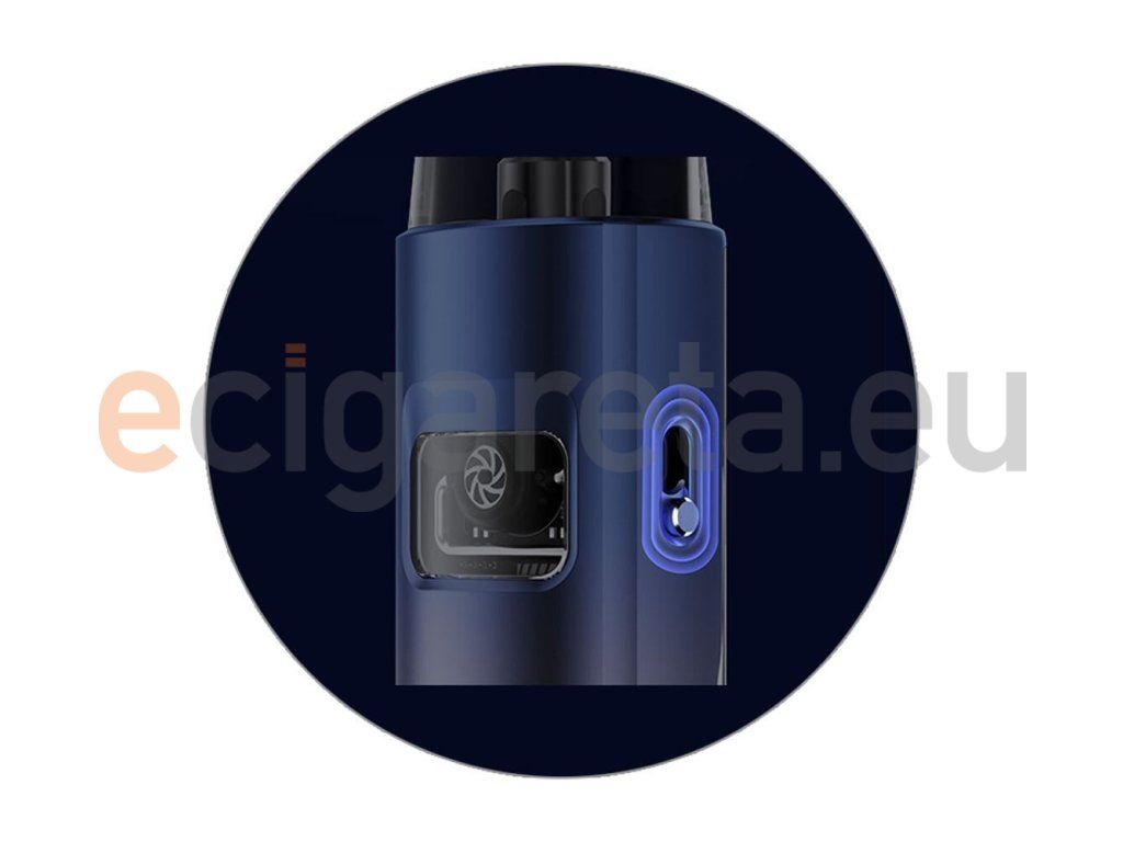 Na předním panelu zařízení se nachází praktický displej s bočními LED diodami. Přímo na displeji máte neustálý přehled o nastaveném výkonu, odporu připojené cartridge, počtu potahů a o procentuálním stavu baterie. Stav baterie můžete také sledovat prostřednictvím přidružených LED diod, které mění svou barvu podle aktuální úrovně nabití.