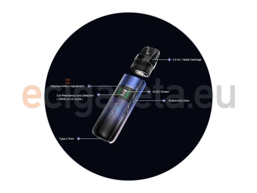 VooPoo Argus E40 Pod Kit je všestranný pod systém vhodný ke všem typům vapování. Poznejte nepoznané kvality futuristicky zpracovaného modelu s podporou dvou metod spínání potahu, stylovým displejem, možností regulace výstupního výkonu, manuálním nastavením přívodu vzduchu a podporou platformy PnP-X. Vapujte dlouhé hodiny bez nutného dobíjení díky integrované baterii s kapacitou 1800 mAh a užívejte si nerušený vaping s cartridgemi o objemu 4,5 ml. VooPoo Argus E40 Pod Kit má zaručeně co nabídnout.