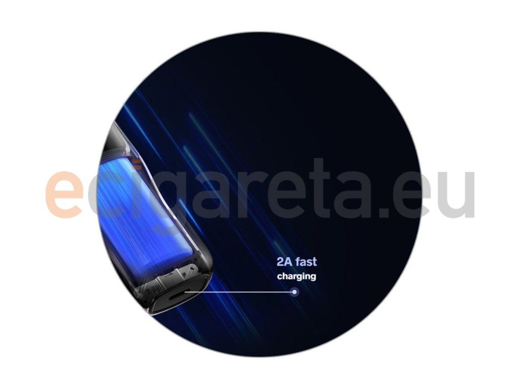 V jádru e-cigarety na vás čeká integrovaná baterie s ohromující kapacitou 1800 mAh, díky které si budete moci užívat intenzivní mnohahodinový vaping bez potřeby dalšího dobíjení. K velké kapacitě baterie nesmí chybět také výkonný dobíjecí port, ten se nachází ve spodní části a nabídne podporu nabíjení s parametry 5V a 2A.