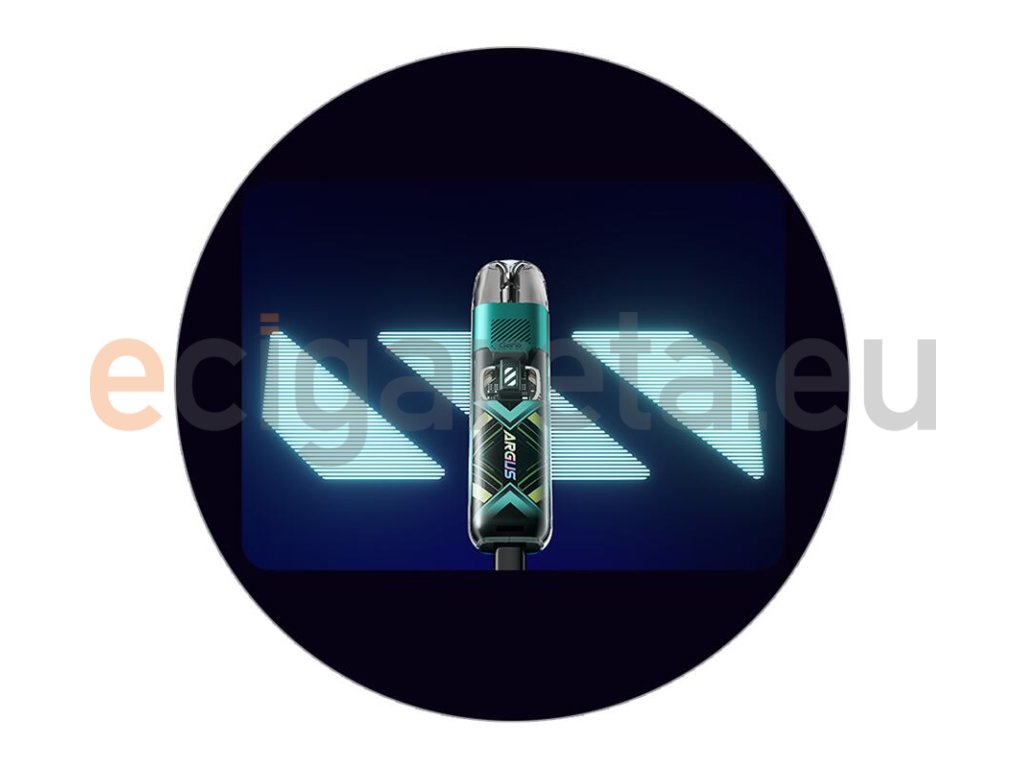 Pro zjištění aktuálního stavu baterie poslouží LED indikace na předním panelu. E-cigareta samotná potom nedisponuje žádným ovládacím tlačítkem, žhavení probíhá zcela automaticky ihned po potažení z náustku. Potřebný výkon si e-cigareta nastaví rovněž automaticky, celkové ovládání je tedy nesmírně intuitivní, praktické a jednoduché. Ve vrchní části modelu se nachází populární cartridge Argus Pod s integrovanou žhavící hlavou a objemem 2 ml. Cartridge nabídne také pohodlné boční plnění a efektivní cirkulaci vzduchu díky čtyřem vzduchovým otvorům v její spodní části. Cartridge je součástí rodiny zařízení spadajících pod moderní chuťovou technologii iCosm Code. Je navržena s maximálním důrazem na výrazné podání chuti, dlouhou životnost a perfektní výsledky při žhavení. VooPoo Argus P1S Pod Kit je stylová e-cigareta pro klasické šlukování, jejichž užívání si rozhodně zamilujete.