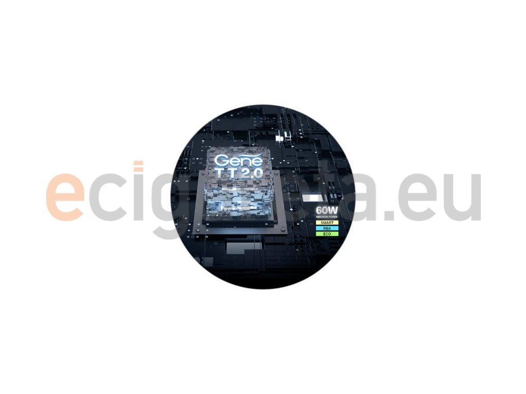 Tělo e-cigarety Drag E60 je osazeno čipsetem GENE TT 2.0, který se postará o hladký chod celého zařízení a zajistí bleskurychlý náběh žhavení. Díky čipsetu se můžete těšit také na luxusně zpracované výstupní režimy a na skvělý power management. Hlavní výsadou je potom podpora inteligentního režimu SMART, díky kterému si zařízení samo nastaví doporučený výkon dle odporu tělíska. Čipset nabídne rovněž přepracované uživatelské rozhraní pro ještě jednodušší nastavení.