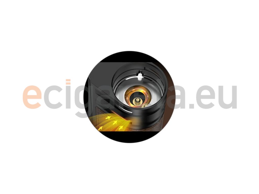 Pokud si rádi upravujete tuhost potahu během používání, tak vás jistě potěší intuitivní systém nastavení airflow. V boční části u kontaktu pro vložení cartridge se nachází napevno nainstalované otvory pro přívod vzduchu, po nasazení cartridge na tělo postačí cartridgí otáčet, čímž ovlivníte výsledný přísun vzduchu do cartridge během potahování a můžete si tak pohotově regulovat výslednou tuhost potahu.