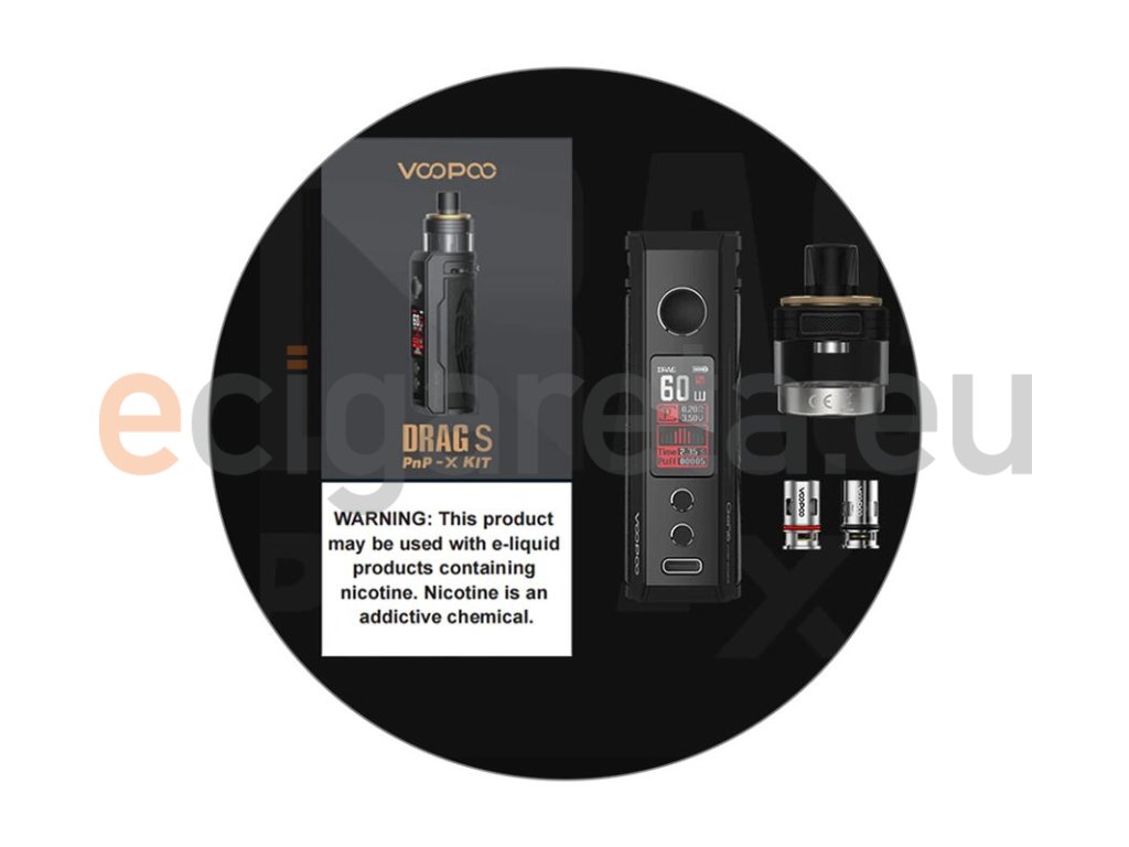 Legendární modely e-cigaret VooPoo Drag S a Drag X se vrací v nové podobě s ještě stylovějším designem a ještě ergonomičtější konstrukcí. VooPoo Drag S PnP-X Pod Kit je vylepšenou verzí původního modelu Drag S s celou řadou užitečných prvků pro každodenní využití. Nabídne krásné designové zpracování a bytelnou kovovou konstrukci, kterou doplňuje stylový kožený panel v zadní části s motivem série Drag Knight. Rozměry celé e-cigarety činí 119,5 x 33 x 28 mm. Skvěle padne do ruky a pohodlně se užívá. Uvnitř těla se nachází integrovaná baterie s kapacitou 2500 mAh, která se postará o hladký chod a zajistí také vysoký výstupní výkon. Ten lze regulovat v rozpětí 5 - 60 W přímo na předním ovládacím panelu.