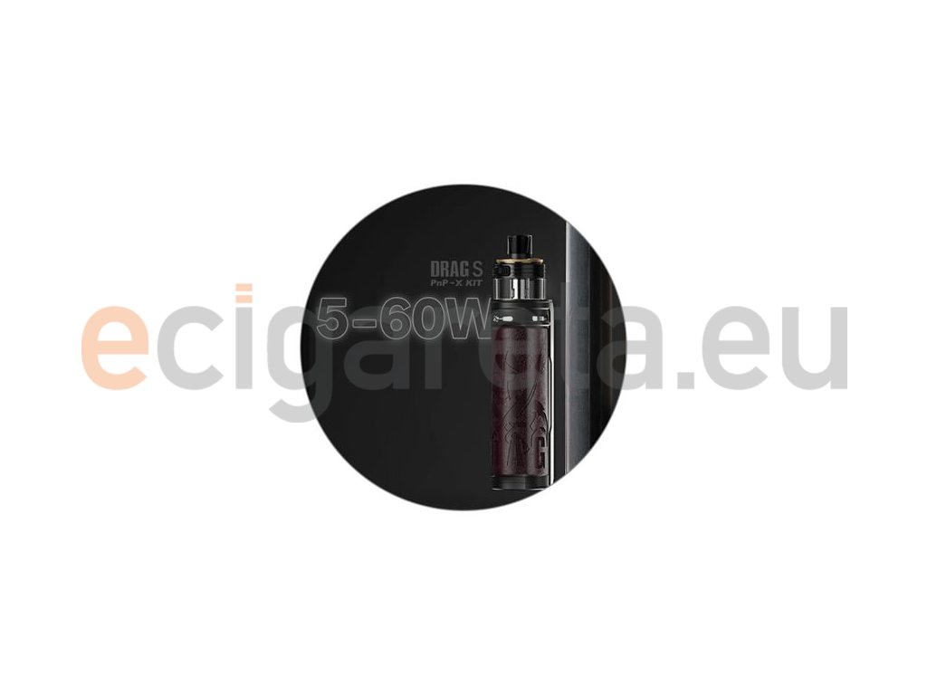 Legendární modely e-cigaret VooPoo Drag S a Drag X se vrací v nové podobě s ještě stylovějším designem a ještě ergonomičtější konstrukcí. VooPoo Drag S PnP-X Pod Kit je vylepšenou verzí původního modelu Drag S s celou řadou užitečných prvků pro každodenní využití. Nabídne krásné designové zpracování a bytelnou kovovou konstrukci, kterou doplňuje stylový kožený panel v zadní části s motivem série Drag Knight. Rozměry celé e-cigarety činí 119,5 x 33 x 28 mm. Skvěle padne do ruky a pohodlně se užívá. Uvnitř těla se nachází integrovaná baterie s kapacitou 2500 mAh, která se postará o hladký chod a zajistí také vysoký výstupní výkon. Ten lze regulovat v rozpětí 5 - 60 W přímo na předním ovládacím panelu.