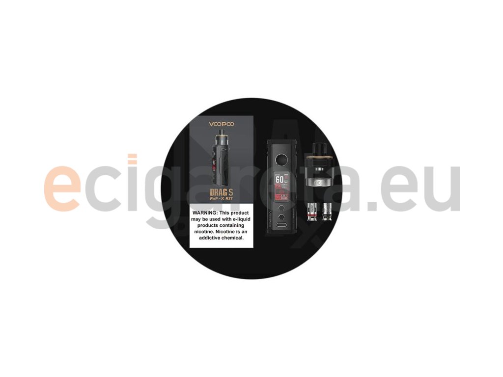 | Obsah balení: 1x zařízení VooPoo Drag S (2500 mAh) 1x cartridge VooPoo PnP-X Pod (5 ml) 1x žhavící tělísko VooPoo PnP-VM1 (0,3 ohm) 1x žhavící tělísko VooPoo PnP-VM5 (0,2 ohm) 1x USB-C kabel pro dobíjení 1x uživatelský manuál |