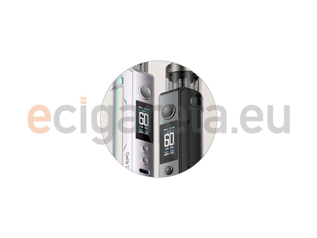 V jádru e-cigarety se nachází upgradovaný čipset Gene.TT 2.0, který nabídne perfektní výsledky při používání a přehledné uživatelské rozhraní. Všechny potřebné funkce ovládáte pomocí panelu v přední části, který tvoří ovládací tlačítka a velký barevný displej. E-cigareta pracuje hned se třemi výstupními režimy, pro příznivce jednoduchého provozu je připraven režim SMART, který nastaví výkon automaticky za vás a zároveň omezí rozsah regulovaného výkonu, aby nedošlo k poškození hlavy. Pro pokročilejší uživatele je připraven režim RBA pro vlastní regulaci výkonu v libovolném rozpětí mezi 5 - 60 W a nový režim ECO, který prodlouží životnost vaší baterie. Ve spojení s novým typem cartridge PnP-X s objemem 5 ml a novými hlavami PnP-X se jedná o vynikající DL zařízení pro náročné, které ocení také naprostí začátečníci.