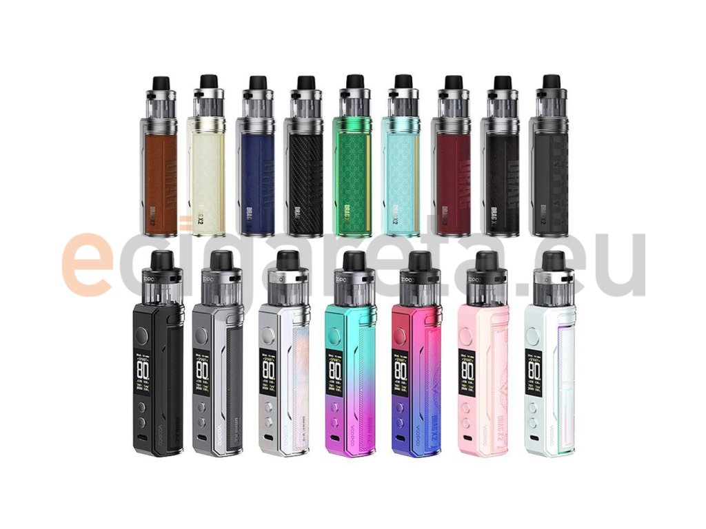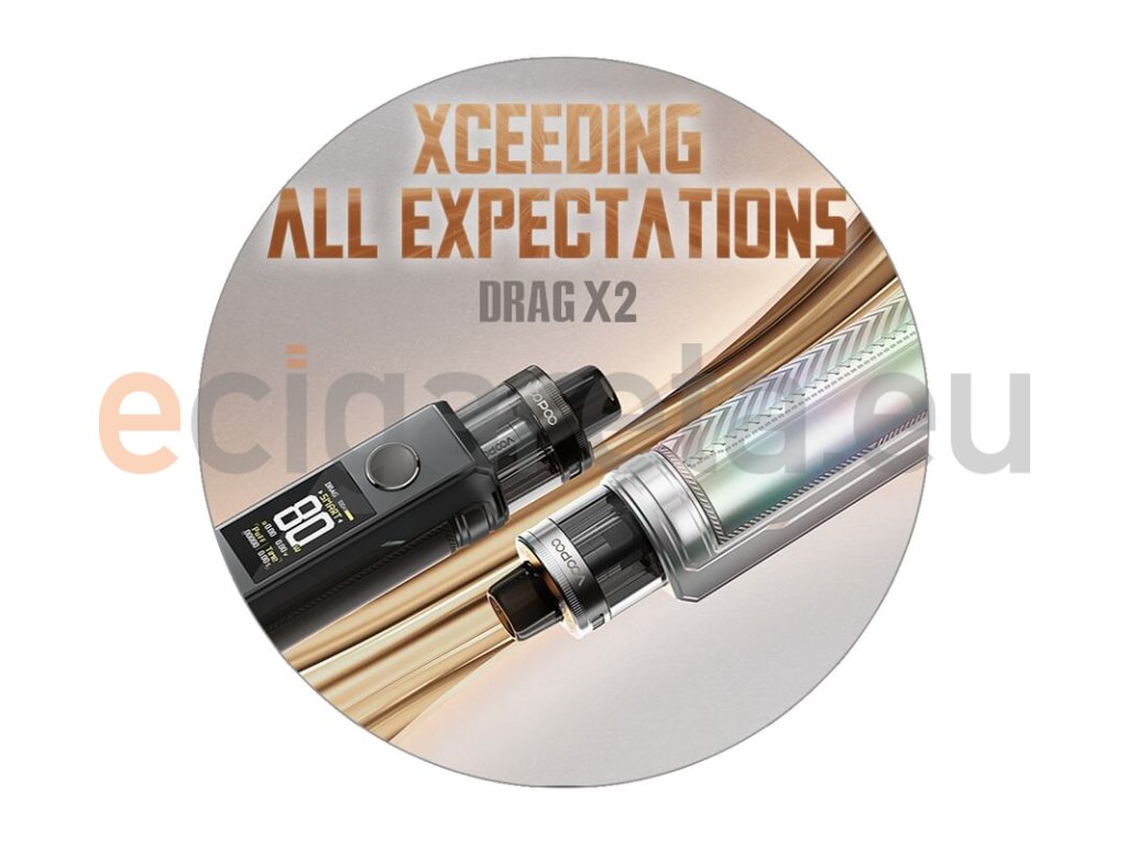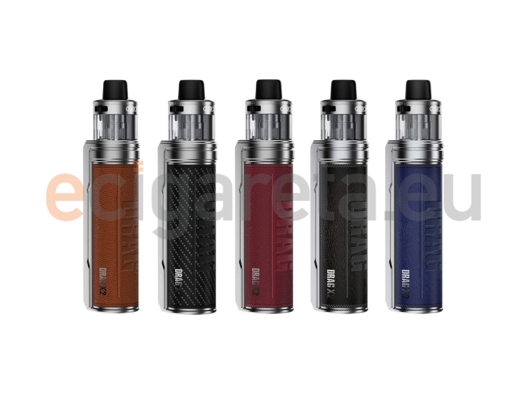 Druhá generace populárních modelů e-cigaret Voopoo Drag S a Drag X přináší celou řadu vylepšení v čele s upgradovaným čipsetem, přepracovaným rozhraním, podporou většího množství režimů, větším objemem a novou platformou PnP-X pro co nejlepší výsledky při vapování. Verze VooPoo Drag X2 Pod Kit nabídne elegantní a moderně zpracované tělo ze zinkové slitiny a kůže. Samozřejmostí jsou potom opět praktické rozměry a ergonomicky zaoblené hrany v zadní části pro komfortní stisk v dlani. Tělo zařízení ukrývá slot pro vlastní baterii typu 18650. Díky pohonu na externí baterii si dokáže model Drag X2 poradit s výstupním výkonem až 80 W. Externí baterii potom můžete pohodlně dobíjet také přímo v těle e-cigarety díky USB-C portu s podporou 2A nabíjení v přední části.