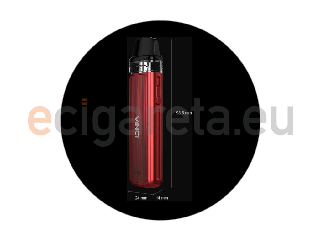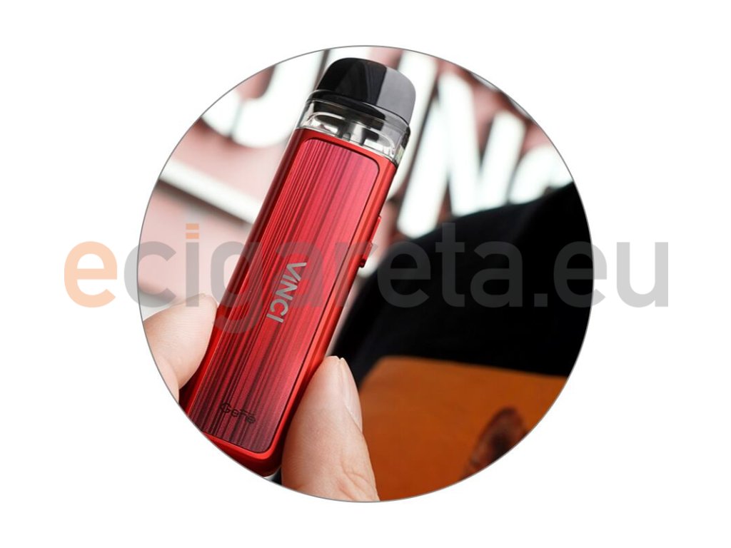 VooPoo Vinci Pod Kit je jednoduchá elektronická cigareta s nádherným designem, která se zaměřuje na milovníky MTL. Přináší krásné zpracování a řadu jednoduchých prvků, díky čemuž si ji velice snadno oblíbíte. Populární ergonomická konstrukce modelů Vinci zaručuje pohodlné používání a snadné přenášení. Rozměry činí jen 24 x 14 x 93,5 mm. Tělo nabídne speciální povrchovou úpravu, která minimalizuje otisky prstů. Tato úprava zároveň eliminuje blednutí barvy zařízení, e-cigareta tak bude stále vypadat jako nová. V jejím těle se nachází integrovaná baterie s kapacitou 800 mAh. E-cigareta Vinci Pod pracuje s výstupním výkonem 15 W, těšit se můžete na stabilní chod a efektivní náběh žhavení. Baterie vystačí slabším kuřákům až na celý den. V případě potřeby dobití pak jednoduše připojíte USB-C kabel a během chvilky ji dobijete.