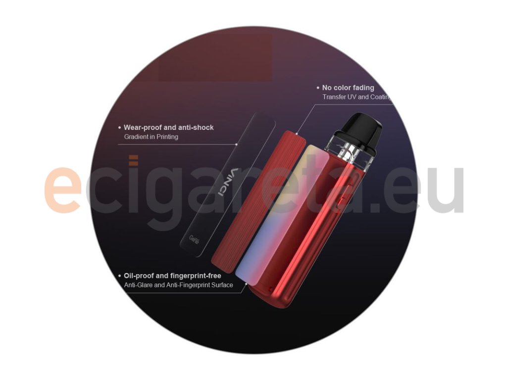 | Precizní designové zpracování VooPoo Vinci Pod Kit se představuje s krásným zpracováním. Ergonomicky pokračuje v zaběhnuté tradici dalších e-cigaret ze série Vinci, můžete se proto těšit na pohodlné držení v ruce během používání a na snadné přenášení. Nově však přináší pečlivě navrženou konstrukci s panely tvořenými hned několika vrstvami. Boční strany jsou tak vybaveny povrchovou úpravou pro minimalizaci otisků prstů a zároveň působí jako nádherný designový doplněk. |