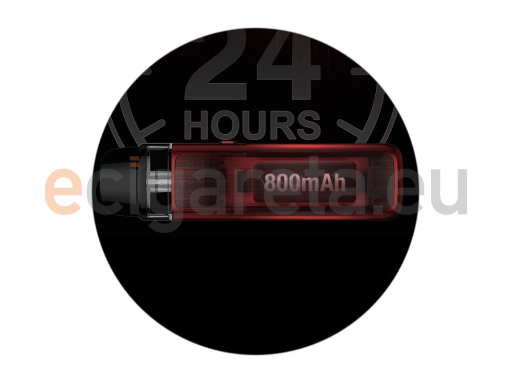 | Integrovaná baterie 800mAh Uvnitř kompaktního těla s rozměry 24 x 14 x 93,5 se nachází integrovaná baterie s velkou kapacitou 800 mAh, která si u slabších kuřáků poradí s až celodenní výdrží. Silnější kuřáci se mohou těšit na mnohahodinovou výdrž bez potřeby dalšího dobíjení. Díky integrované baterii se můžete rovněž těšit na stabilní chod a rychlý a efektivní náběh žhavení. |