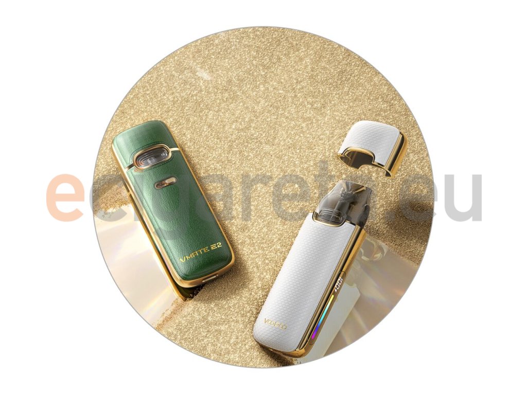 Ikonický design elektronické cigarety VooPoo Vmate E přenáší výrobce VooPoo také do druhé generace s názvem Vmate E2, nově však nabídne řadu vylepšení pro ještě větší komfort při vapování a pro ultimátní požitek z potahu. Krásný panel z ekokůže se nyní nachází na obou panelech zařízení, design je celkově ještě odladěnější, zaoblenější a příjemněji se používá. Díky novým cartridgím Vmate V3 Top Fill s delší životností, výraznějším podáním chuti a skvělou kapacitou si můžete užívat plnohodnotný vaping bez kompromisů. A s větší kapacitou integrované baterie, která se dostala až na 1500mAh nabídne možnost intenzivnějšího potahování s mnohem delší dobou provozu na jedno nabití. VooPoo Vmate E2 Pod Kit je opravdová stylovka.