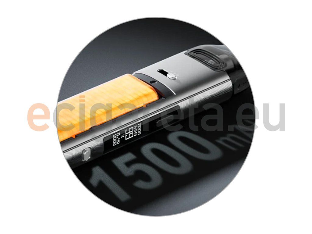 Do kompaktního těla e-cigarety se výrobci podařilo vtěsnat integrovanou baterii o kapacitě 1500 mAh. Díky tomu zvládne e-cigareta velmi intenzivní užívání s minimem potřebného dobíjení a vysoký výstupní výkon. Baterii si budete moci navíc kdykoliv pohodlně dobít prostřednictvím moderního rozhraní USB-C s podporou nabíjení proudem až 2A. Do plné kapacity se zvládne nabít už za 40 minut.