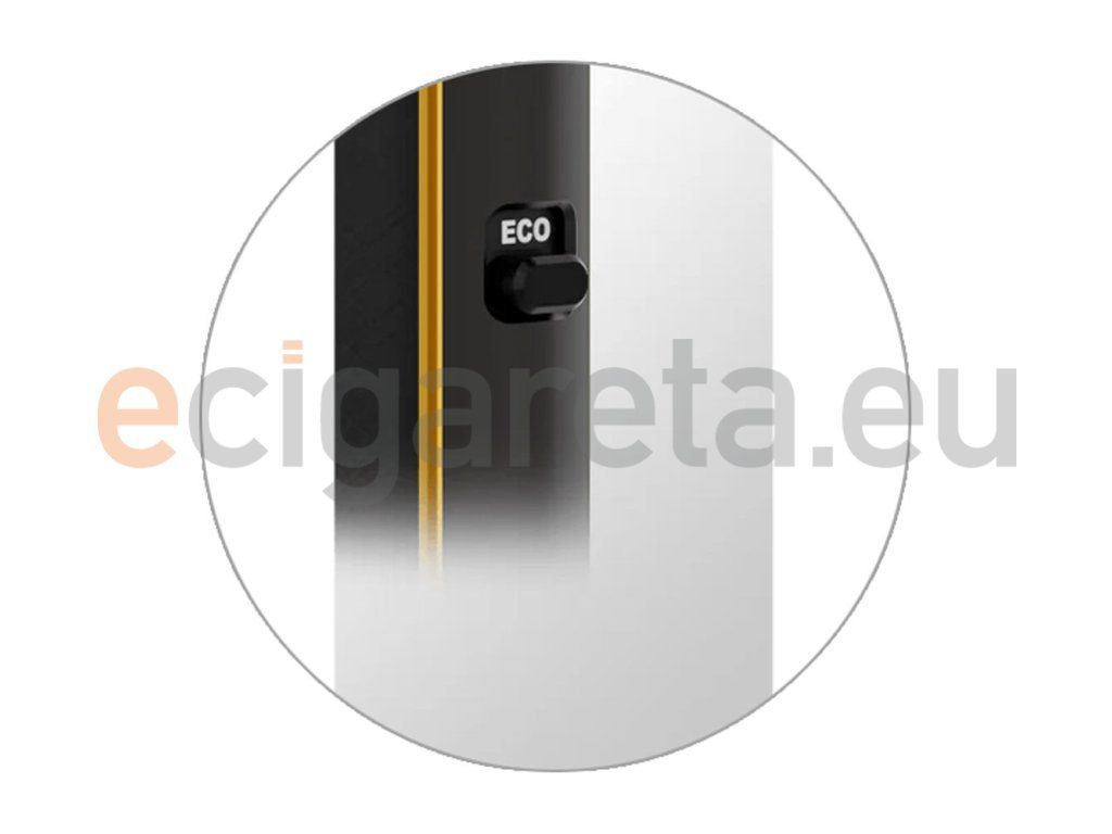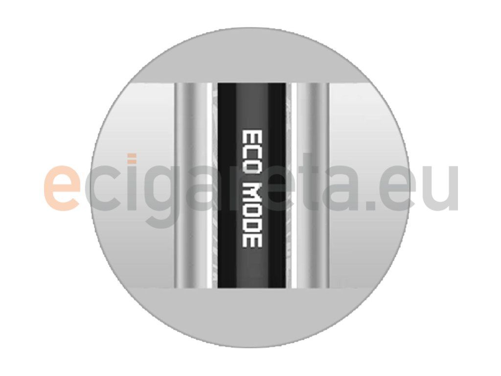 Oblíbený ECO režim je zpět. U e-cigarety najdete rovnou dva výstupní režimy, přičemž přepínání mezi nimi je snazší, než kdykoliv předtím. Na předním panelu najdete manuální přepínač, jedním pohybem prstu si tak přepínáte mezi výchozím režimem POWER nebo úsporným režimem ECO. V režimu ECO nastaví e-cigareta výkon automaticky za vás a zároveň dojde k potemnění displeje a snížení jasu, aby nedocházelo k nadměrnému přetěžování a vybíjení baterie.