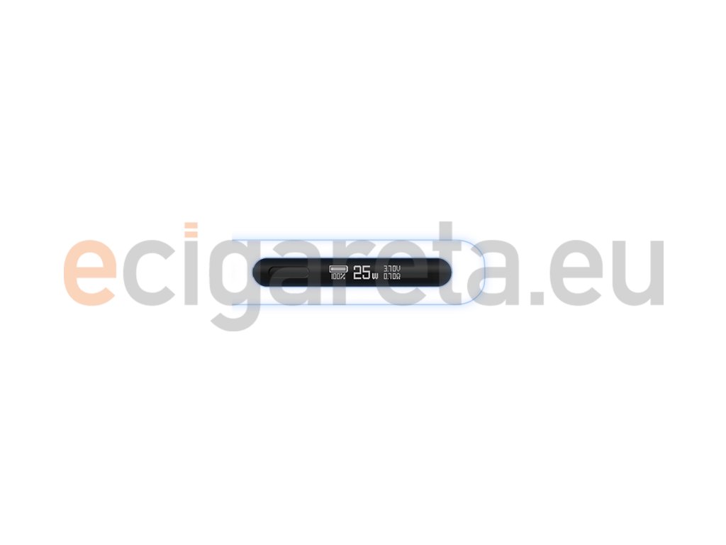 V boční části se nachází přehledný a jasný OLED displej se stručným a uživatelsky přívětivým rozhraním. Displej vás informuje o aktuálním stavu baterie, výstupním napětí, odporu cartridge a o nastaveném výkonu. Ten je možné regulovat v rozpětí 5 - 25 W. Výkon si navíc nastavíte pomocí jediného tlačítka, celkové nastavení je tak nesmírně rychlé a intuitivní.