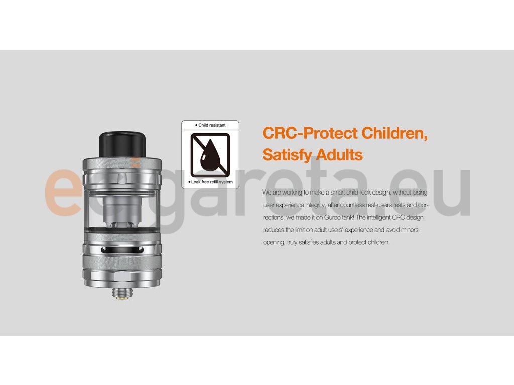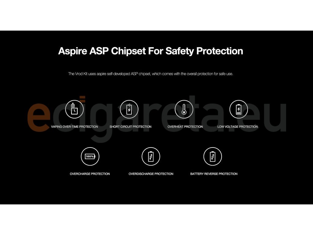 Vysoce výkonný Grip na dvě baterie typu 18650 ze zinkové slitiny a kůže. Výkon až 200W, režimy VW, VV, Bypass, TC, TCR, CPS, počítadlo potahů, možnost změny barvy TFT displeje, závit 510, USB-C nabíjení, ASP čip s řadou ochranných prvků. Clearomizer Aspire Guro 4-5 ml součástí SETU.