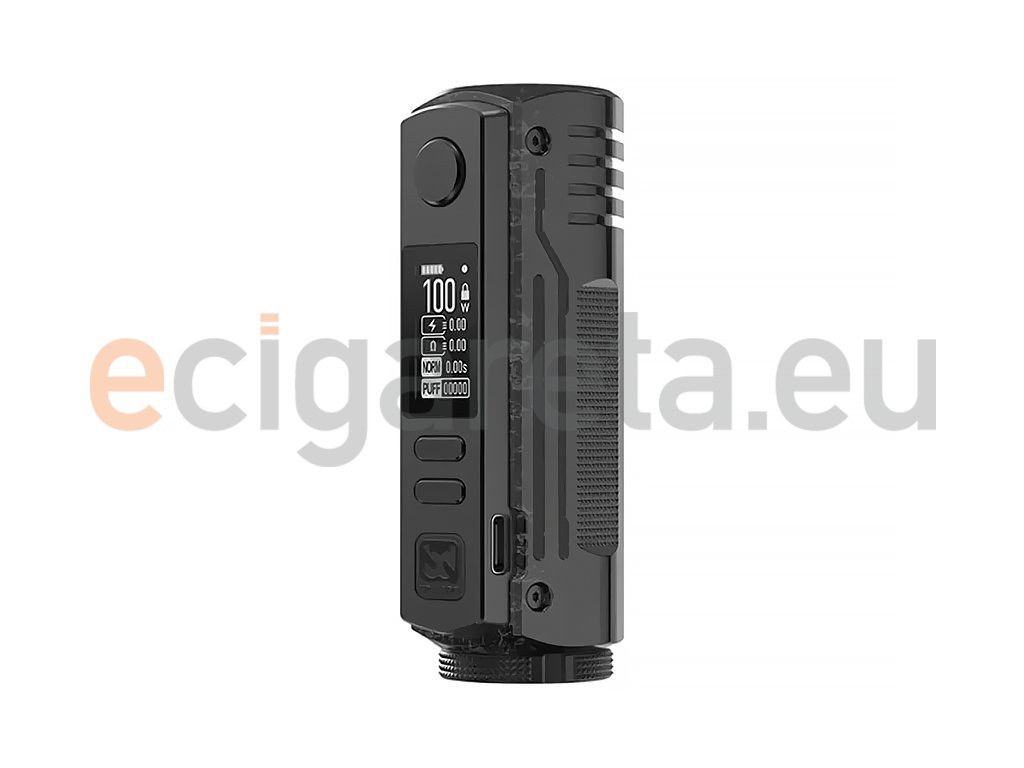 Parametry a specifikaceRozměry: 90 x 30 mm Kapacita baterie: Není součástí Závit: 510 Režimy: VW, Bypass Metody spínání potahu: Manuální tlačítkem Výstupní napětí: 1 - 8 V Výstupní výkon: 5 - 100 W Podporovaný odpor: 0,08 - 3,5 ohm Typ baterie: 18650/21700 Způsob nabíjení: USB-C 5V/2A Regulace výkonu: Ano Objem tanku (Claromizéru): Není součástí Styl potahování: dle použitého atomizéru Odpor žhavících hlav: Nejsou součástí Regulace přívodu vzduchu (Airflow): dle použitého atomizéru Hmotnost: 88g Barva: Forgen Carbon Fiber Materiál: Hliníková a zinková slitina, nerezová ocel |