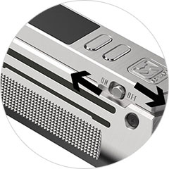 Jednoduché menu s dvěma navigačními tlačítky, posuvník pro zapínání a výběr z pěti barevných témat rozhraní. Režimy výkon a bypass s nastavením rychlosti žhavení.