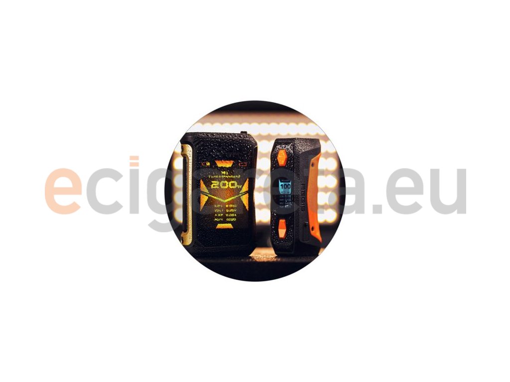 Nejnovější přírůstek do rodiny vynikajících gripů Aegis od renomovaného výrobce GeekVape dostal název GeekVape Aegis X Mod. Jedná se o mod s pokročilými funkcemi a vlastnostmi, ale také luxusním designem a širokým nastavením pro ty nejnáročnější uživatele. Jeho nespornou výhodou je potom také výrazná odolnost vůči vnějším vlivům, zejména vůči vodě, prachu a možnému pádu. Díky svým rozměrům 90 x 31,3 x 56,1 mm a perfektně zpracované, ergonomické konstrukci, skvěle padne do každé ruky a pohodlně se používá v průběhu celého dne. Zadní část modu je opatřena koženým potahem pro příjemné držení v dlani, celé tělo je potom vyrobeno z kovu, který je v přední části potažen speciální pogumovanou vrstvou pro ještě komfortnější používání. Vrchní část modu nabídne závit typu 510 pro pohodlné osazení vlastním atomizérem se stejným typem uchycení závitu. Mod funguje bravurně jak se standardními atomizéry na tovární žhavící hlavy, tak také s motacími DIY atomizéry.