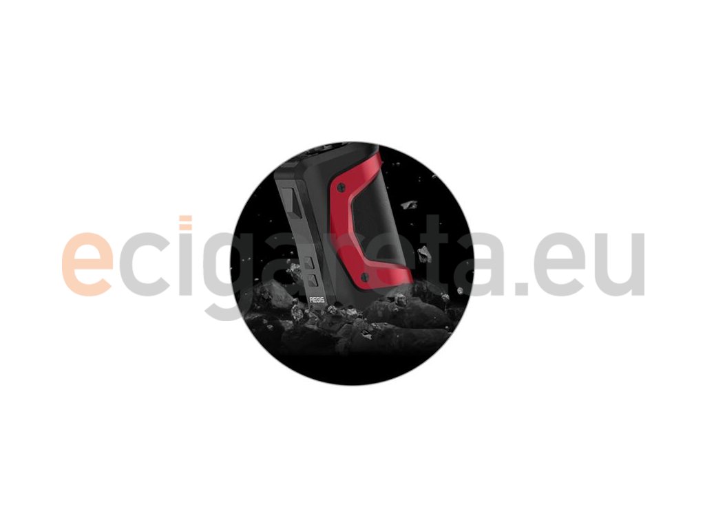 Nejnovější přírůstek do rodiny vynikajících gripů Aegis od renomovaného výrobce GeekVape dostal název GeekVape Aegis X Mod. Jedná se o mod s pokročilými funkcemi a vlastnostmi, ale také luxusním designem a širokým nastavením pro ty nejnáročnější uživatele. Jeho nespornou výhodou je potom také výrazná odolnost vůči vnějším vlivům, zejména vůči vodě, prachu a možnému pádu. Díky svým rozměrům 90 x 31,3 x 56,1 mm a perfektně zpracované, ergonomické konstrukci, skvěle padne do každé ruky a pohodlně se používá v průběhu celého dne. Zadní část modu je opatřena koženým potahem pro příjemné držení v dlani, celé tělo je potom vyrobeno z kovu, který je v přední části potažen speciální pogumovanou vrstvou pro ještě komfortnější používání. Vrchní část modu nabídne závit typu 510 pro pohodlné osazení vlastním atomizérem se stejným typem uchycení závitu. Mod funguje bravurně jak se standardními atomizéry na tovární žhavící hlavy, tak také s motacími DIY atomizéry.
