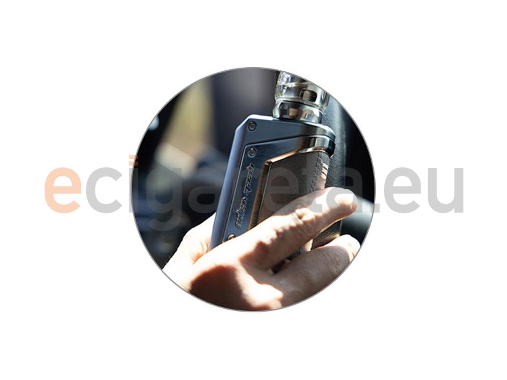 GeekVape L200 je ergonomicky perfektně zpracovaný mod, který přichází s kvalitní kovovou konstrukcí a zadním panelem pokrytým speciální kůží. Díky tradičnímu box modu designu se příjemně drží v ruce během používání. Zároveň nabídne kompaktnější rozměry pro uživatele, kteří neholdují extrémně velkým modům. Rozměry celé sady včetně clearomizéru činí 140,05 x 54,12 x 29 mm.