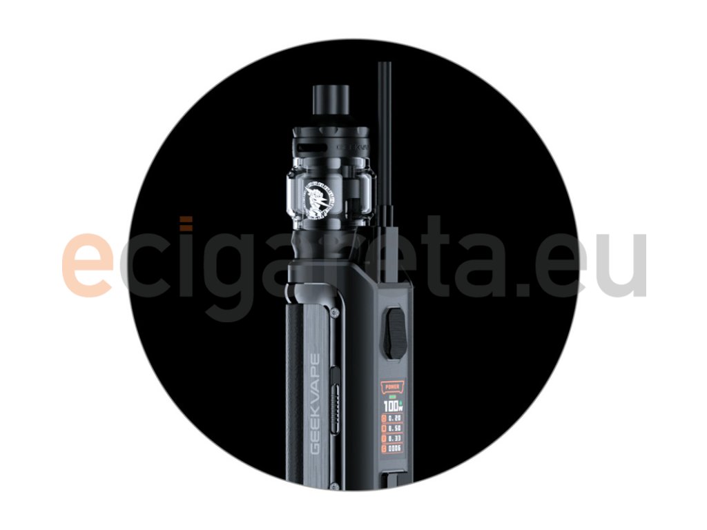 Parametry produktu: Rozměry: 136,5 x 39,3 mm Kapacita baterie: 2500 mAh Výstupní výkon: 5 - 100 W Výstupní režimy: Power / VPC / Bypass Výstupní napětí: max 8,5 V Podporovaný odpor: 0,1 - 3,0 ohm Dobíjení: USB-C port (5V / 2A) Objem clearomizéru: 3,5 ml (s větším sklem) nebo 2 ml (s rovným sklem) Odpor tělísek v balení: GeekVape B Series (0.2ohm) Ni80 Mesh, GeekVape B Series (0,6ohm) KA1 Mesh Závit: 510 Tento výrobek není určen pro náplně obsahující nikotin. |
