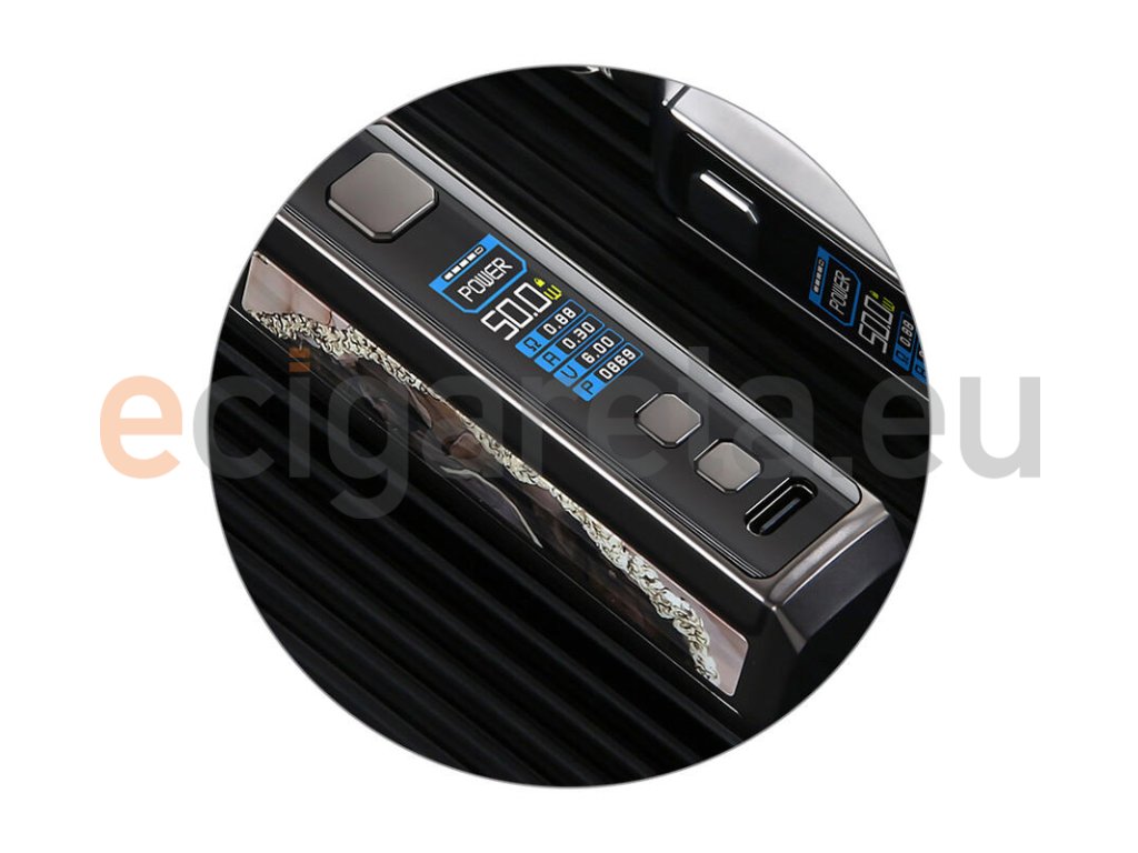 V přední části zařízení se nachází přehledný ovládací panel, na kterém najdete velký displej, dvě regulační tlačítka a velké spínací tlačítko. Pomocí tlačítek si snadno zvolíte vhodný výstupní výkon v rozsahu 5 - 50 W, velké tlačítko slouží pro spínání žhavení a zapnutí, nebo pro vypnutí. Ovládání je nesmírně snadné a intuitivní, seznámíte se s ním během pár minut.