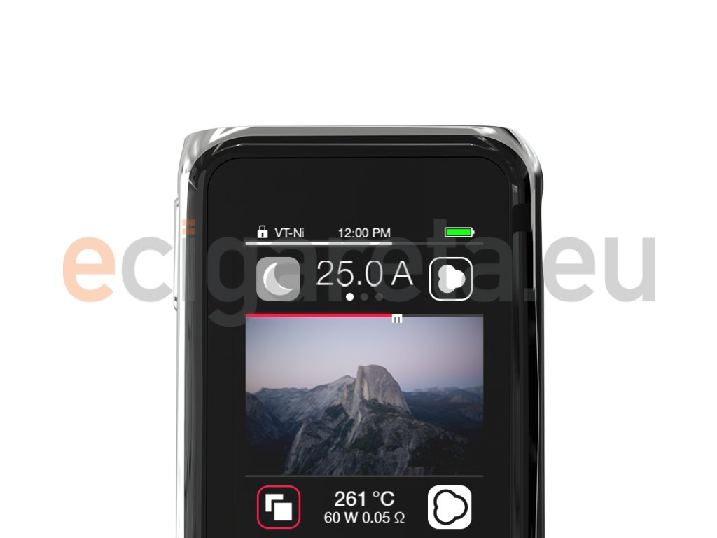 OLED displej: Zobrazení aktuálního výkonu, teploty, napětí, odporu, proudu, času, režimu, počtu potahování a kapacitě baterie