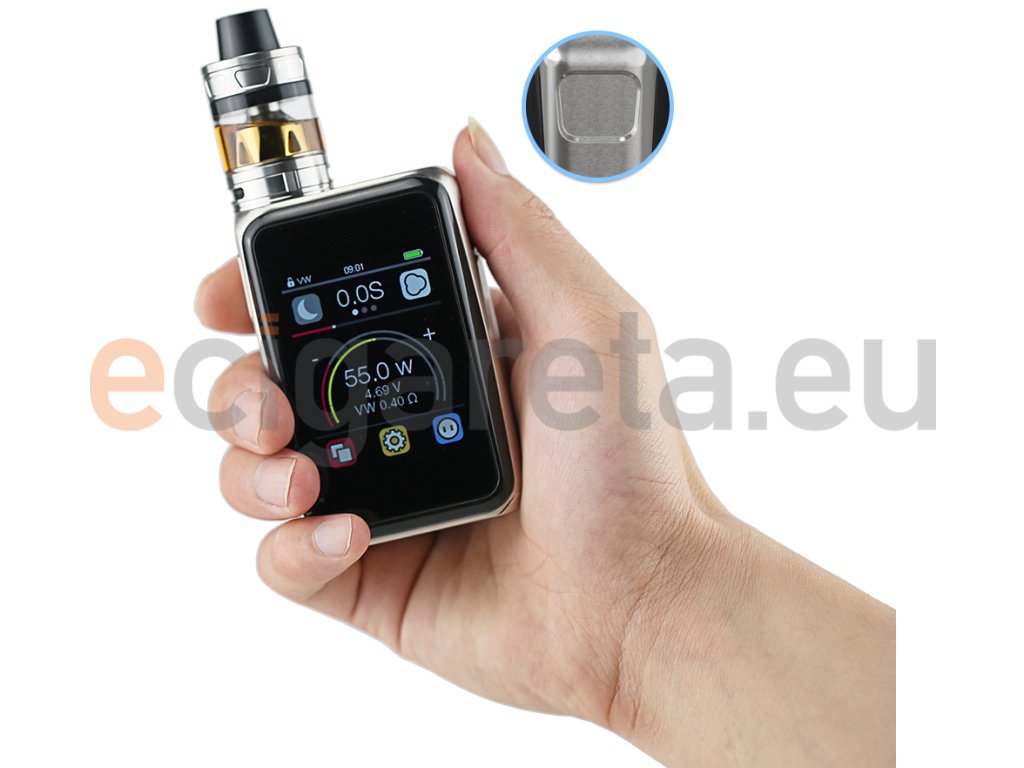 Joyetech představuje nejdokonalejší grip s dotykovým displejem, který díky svým funkcím převyšuje všechny své konkurenty. Přehledný 2,4 palcový displej umožňuje jednoduché nastavení všech potřebných hodnot, modů a funkcí, se kterými CUBOID PRO nešetřil. Klasické mody jako jsou VW (výkon) a VT (teplotní mody) jsou samozřejmostí už každého lepšího gripu, proto přidáváme ještě RTC (zobrazení času a data) a USB Charge Mod (powerbanka). To, co ale dělá z našeho přístroje jasnou jedničku jsou funkce jako je krokoměr, vibrační technologie TAPTEC nebo vlastní nastavení tapety a spořiče obrazovky díky formátu jpg. CUBOID PRO je v této sadě dodáván s clearomizerem ProCore Aries o objemu 4ml.Jeho největší předností jsou atomizery ProC, které nabízejí velký výběr odporů, počtu použitých spirálek a stylu potahování ústa/plíce nebo přímé potahování do plic. Využívá systém horního plnění - po odsunutí vrchní části, plníte liquid jedním ze dvou otvorů. Celý clearomizer je plně rozebíratelný = snadná údržba. Regulace přívodu vzduchu pro nastavení optimální kouřivosti se nachází ve spodní části.
