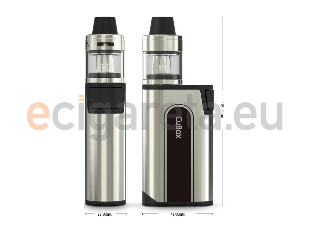 Joyetech CuBox je kompaktní grip s jednoduchým ovládáním, který potěší i náročného uživatele. Vestavěný monočlánek o kapacitě 3000mAh nabízí automatický výstupní výkon až 50W (při plném nabití). Na vrchní části se nachází malý displej s ukazatelem stavu nabití baterie. Mezi jeho další přednosti patří ochrana proti nízkému odporu a napětí, proti zkratu a spodní otvory pro odvod přebytečného tepla. V této sadě nalezneme i nový clearomizer CUBIS 2, který využívá systém horní plnění bez jakéhokoliv šroubování...po odsunutí vrchní části plníte otvorem přímo do těla clearomizeru o objemu 2ml nebo 3.5ml (dle typu zvoleného atomizeru). CUBIS 2 nabízí nové atomizery ProC-BF ze 100% organické bavlny, navržené speciálně pro styl potahování ústa/plíce. Celý clearomizer je plně rozebíratelný = snadná údržba. Regulace přívodu vzduchu pro nastavení optimální kouřivosti se nachází ve vrchní části. Náustek je kompatibilní s 510 náustky.