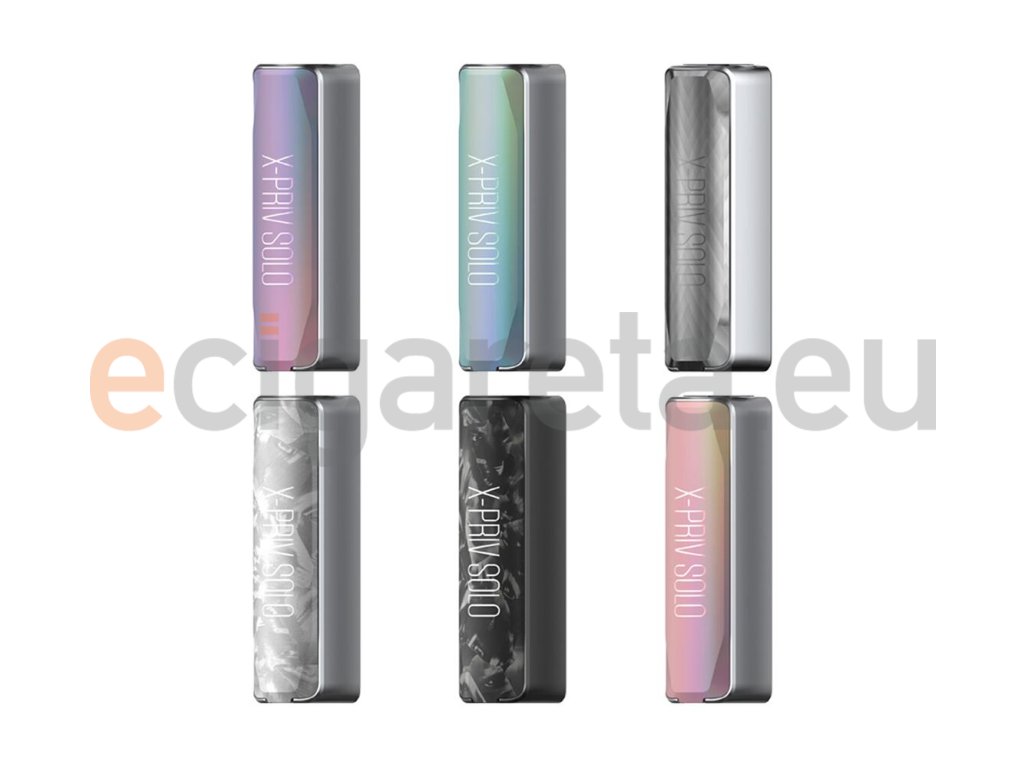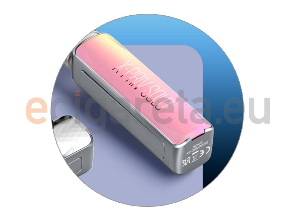 SMOK X-Priv Solo Mod je menším sourozencem dvoubaterkového giganta SMOK X-Priv Plus. Geniálně navržený box mod se slotem pro jednu baterii typu 18650 a výstupním výkonem až 80 W nabídne moderní uživatelské rozhraní, snadnou obsluhu, praktická dotyková tlačítka a obrovský barevný duální displej. Komfortní stisk v dlani zajistí ergonomicky zpracovaná konstrukce s rozměry 89.5 x 28 x 27.65 mm a obrovské spínací tlačítko v boční části modu. Samozřejmostí je tradiční závit typu 510 v horní části, pomocí kterého si můžete mod osadit libovolným vlastním atomizérem s tímto typem uchycení. Možnosti využití jsou tak skutečně nekončící a používání modu Vás rozhodně neomrzí.