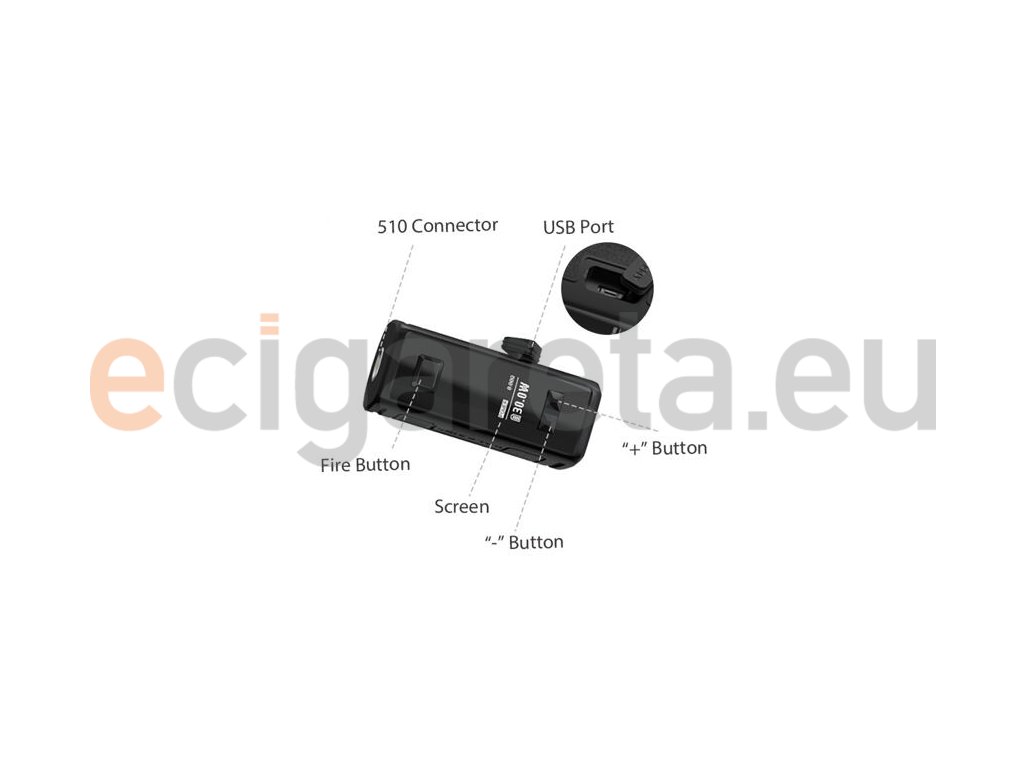 V kompaktním těle modu se nachází integrovaná baterie s kapacitou 950 mAh. Tato baterie se postará o skvělý náběh žhavení a dlouhou výdrž i při intenzivním používání. V případě potřeby pak stačí připojit micro USB kabel k portu na zařízení a baterii si můžete opět kdykoliv pohodlně dobít. Lze dobíjet proudem až 1A.