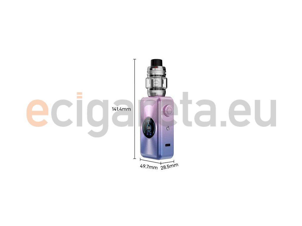 Rozměry: 141.4 x 49.7 x 28.5 mm (včetně atomizéru); 88 x 49.7 x 28.5 mm (samotný mod)