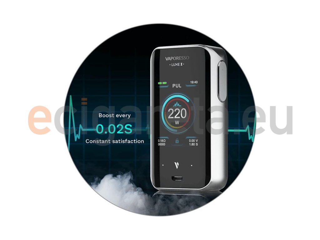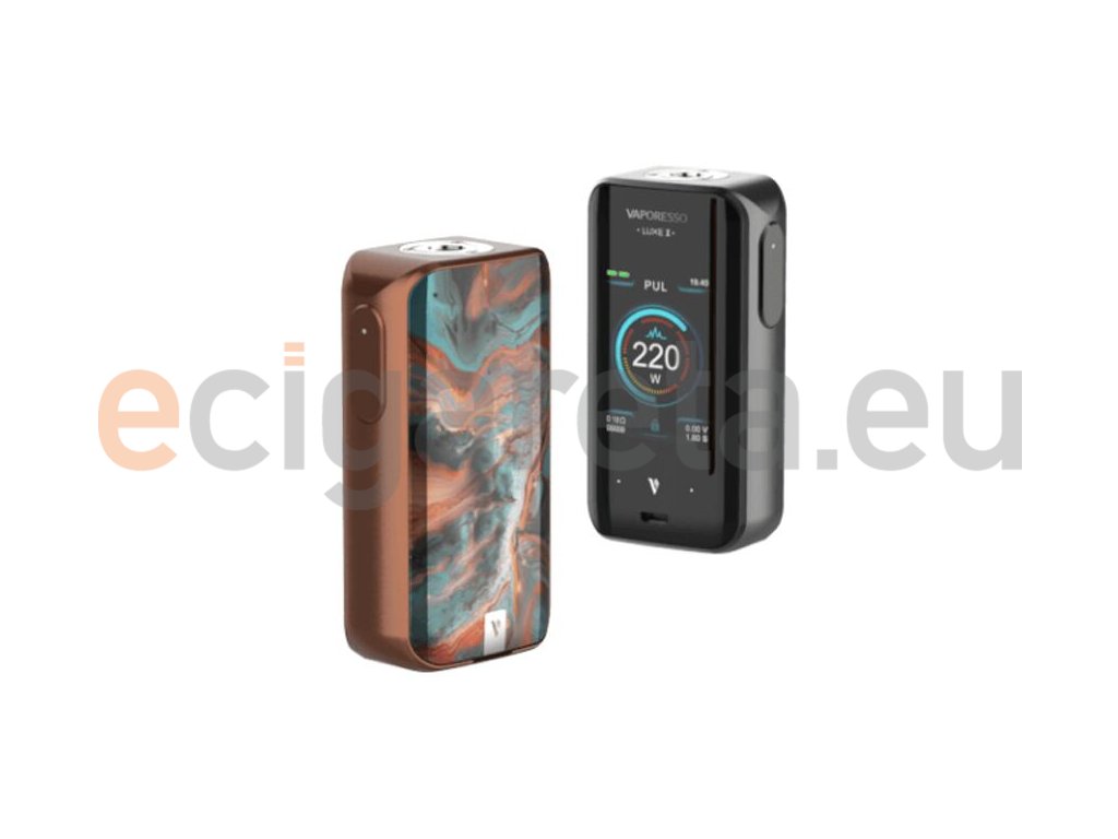 Vaporesso Luxe II Mod je hrdým nástupcem populárního gripu Luxe. Tentokrát přináší vítanou změnu v podobě nového a intuitivního čipu AXON, ale také řadu elegantních designových zpracování se stylovými motivy bočního panelu. Mod disponuje kompaktními rozměry a tradiční box konstrukcí pro pohodlné přenášení a příjemné držení v ruce během vapingu. Potahování je ještě jednodušší díky umístění spínacího tlačítka s velkou plochou v přední části modu. Uvnitř těla modu najdete prvotřídní čip AXON. Ten se postará o hladký chod celého zařízení, stejně jako o bezpečný provoz díky přítomnosti celé řady bezpečnostních prvků. Čip nabídne také skvělé inovativní režimy PULSE a Smart TC. Režim PULSE zachovává stabilně během potahu nastavený výkon pro co nejlepší podání chuti. Režim Smart TC zase snadno rozpozná připojenou spirálku a nastaví doporučené hodnoty pro použití v TC režimu.