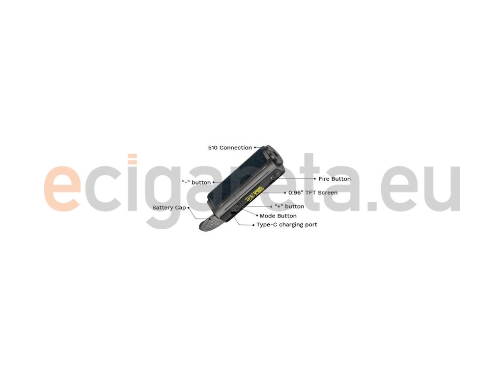 Tělo modu je poháněno oblíbeným a kvalitním čipem AXON, který se postará o perfektní výsledky při vapování. Díky čipu se můžete těšit hned na několik výstupních režimů. Nesmí chybět inteligentní režim Smart VM, který doporučí výkon dle připojeného tělíska. K dispozici je také režim F(t) Mode, který se postará o co nejlepší chuťové podání, režim Pulse pro dodání konstantního výkonu během potahu, nebo DIY režimy, jako jsou VV a Bypass. Čip rovněž umožňuje dobíjení baterie přímo v modu díky portu USB-C proudem až 2A. Jedná se o vynikající grip vhodný jak pro začátečníky, tak také pro pokročilé uživatele. Nesmí chybět závit 510 ve vrchní části, díky čemuž je mod kompatibilní s celou sérií clearomizérů na trhu.