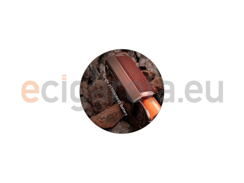 Mod Vaporesso Target 100 nabídne bytelnou konstrukci a speciální povrchovou úpravu kolem těla modu. Tělo je potaženo unikátní tkaninou, která zajišťuje pohodlné držení v ruce a zároveň efektivně odpuzuje kapky vody. Působí také jako jedinečný designový doplněk celého modu. Mod navíd disponuje perfektní ergonomií, takže se příjemně používá a díky povrchové úpravě se nemusíte obávat možného vyklouznutí z ruky.