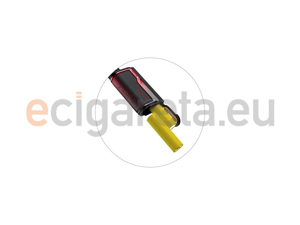 Ve spodní části se nachází dvířka, která ukrývají slot pro dvě baterie typu 18650. Po vložení těchto baterií můžete začít využívat mod naplno. Baterie nejsou součástí základního balení a je nutné dokoupit je samostatně. Díky pohonu na dvě baterie si mod poradí s obrovským výstupním výkonem až 160 W. Baterie si navíc kdykoliv pohodlně dobijete přímo v modu pomocí portu USB-C.