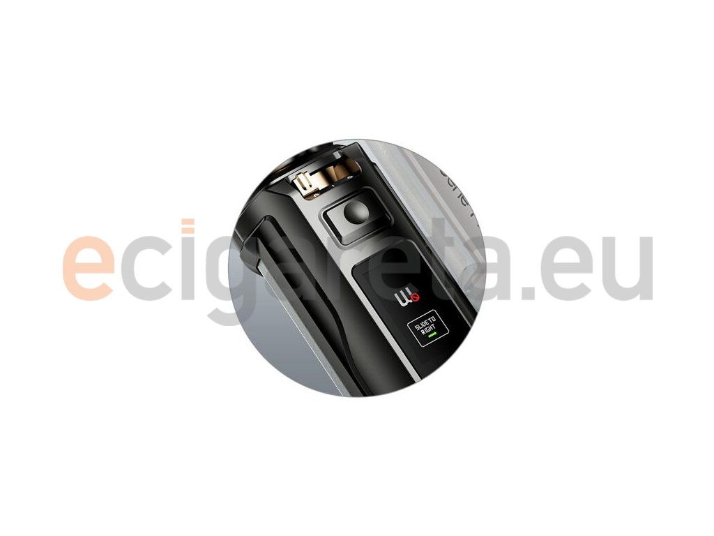 | Slot pro externí baterii VooPoo Argus XT disponuje slotem pro vlastní externí baterii, která se do modu vkládá po odklopení spodního krytu. Mod pracuje s bateriemi 21700, nebo 18650 s použitím adaptéru. Díky pohonu na vlastní baterii 21700 se můžete těšit na hladký a bezproblémový chod celého zařízení. Nespornou výhodou modelu Argus XT je potom také podpora extrémně rychlého nabíjení skrz port USB-C, baterii můžete pohodlně dobíjet proudem až 3A. |