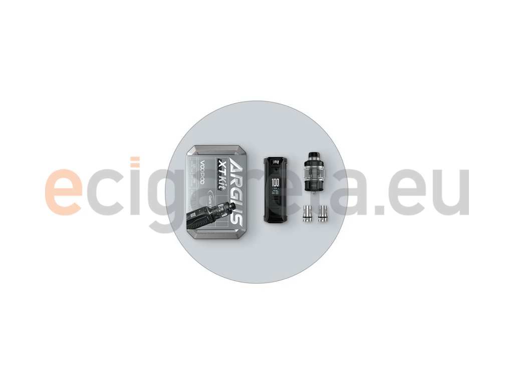 | Obsah balení: 1x mod VooPoo Argus XT 1x clearomizér VooPoo Maat New Tank (6,5 ml) 1x žhavící tělísko VooPoo TPP-DM2 (0,2 ohm) 1x žhavící tělísko VooPoo TPP-DM4 (0,3 ohm) 1x adaptér pro baterii 18650 1x náhradní pyrexové tělo (6,5 ml) 1x sada náhradních těsnění 1x USB-C kabel pro dobíjení 1x uživatelský manuál Součástí balení nejsou baterie 21700 a 18650. |