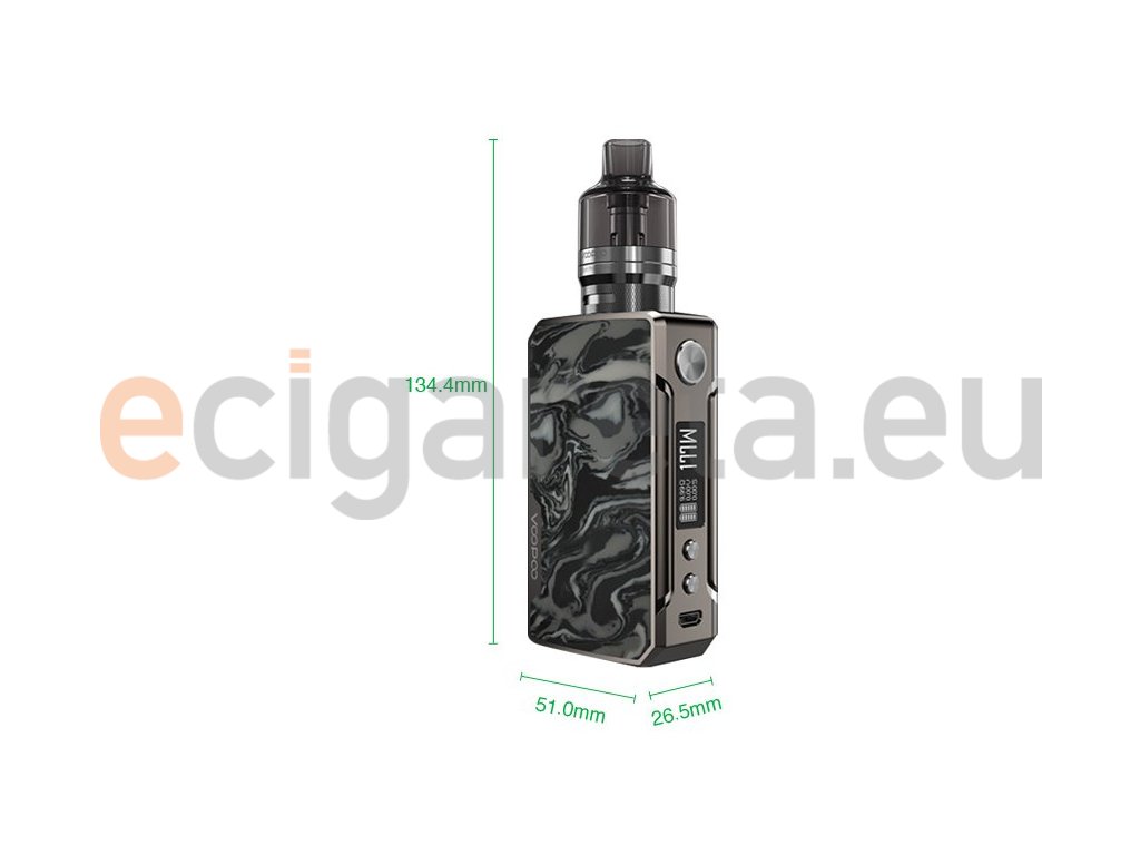 Řada gripů Drag od společnosti VOOPOO se zapsala do podvědomí vaperů svojí skvělou funkčností a kouřivostí. Není proto divu, že na svět přichází Drag 2 Refresh, který Vás uhrane už při prvním pohledu na jeho dokonale propracované, designové a odlehčené tělo. GENE.FIT čip disponuje výkonem až 177W a ochrání Váš clearomizer proti přepálení. Přehledný OLED displej nabízí detailní informace o nastavení. Mezi jeho další přednosti patří ochrana proti zkratu a přehřátí, použití monočlánků typu 18650, či nabíjení pomocí micro USB kabelu. Výrobce k této sadě přidělil clearomizer PNP s jednoduchým spodním plněním pojme až 4,5ml liquidu. V základním balení budete mít na výběr dvě žhavicí hlavy, a to masivní výrobce páry PnP - VM5 o odporu 0,2ohm a PnP - VM6 o odporu 0,15ohm.