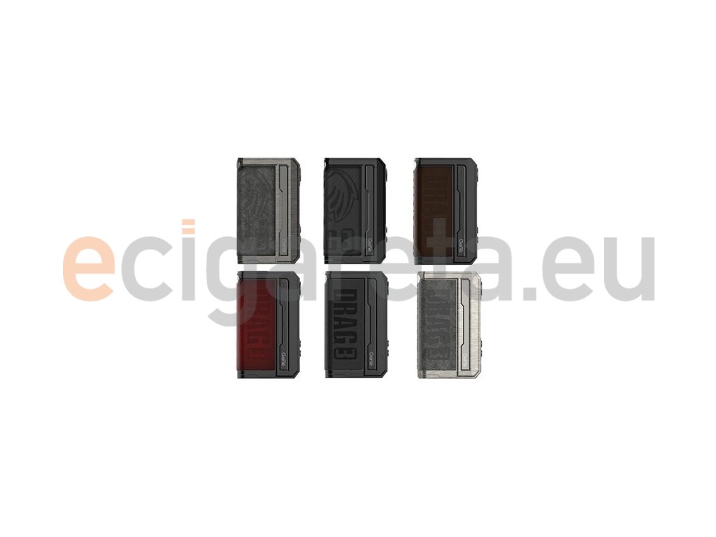 Série Drag je proslulá krásným designovým zpracováním všech zařízení. Nejinak tomu je i v případě modu VooPoo Drag 3. Tělo modu je vyrobeno z lehoučké zinkové slitiny, která je v zadní části doplněna o kožený potah. K dostání je hned několik barevných variant, z nichž si zaručeně vybere každý vaper. Nesmí chybět ani tradiční box mod design se zaoblenou zadní částí pro pohodlné držení v ruce.