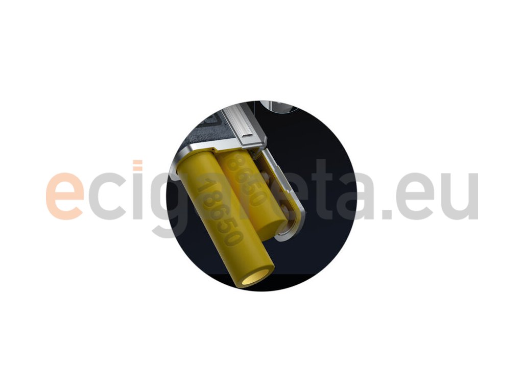 Ve spodní části modu najdete slot pro dvě externí baterie typu 18650. Díky pohonu na dvě baterie se můžete těšit na obrovský výstupní výkon, jež dosahuje až 177 W. Výhodou je přítomnost dobíjecího portu USB-C na těle modu pro dobíjení baterií přímo v zařízení.